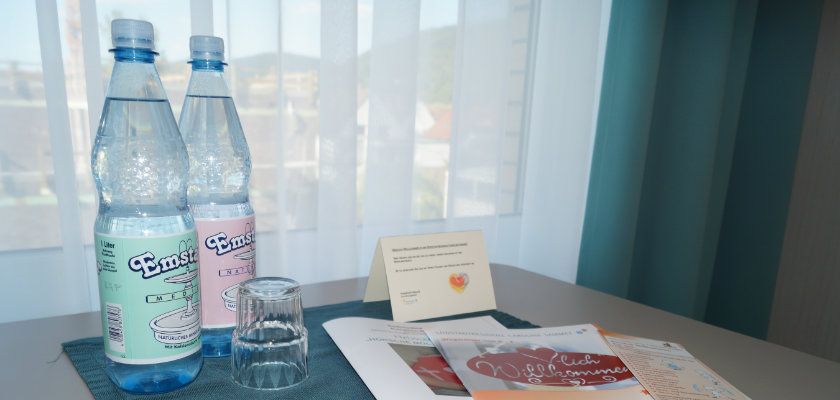 - Kostenfrei Tagesaft, Mineralwasser und warme Getränke
